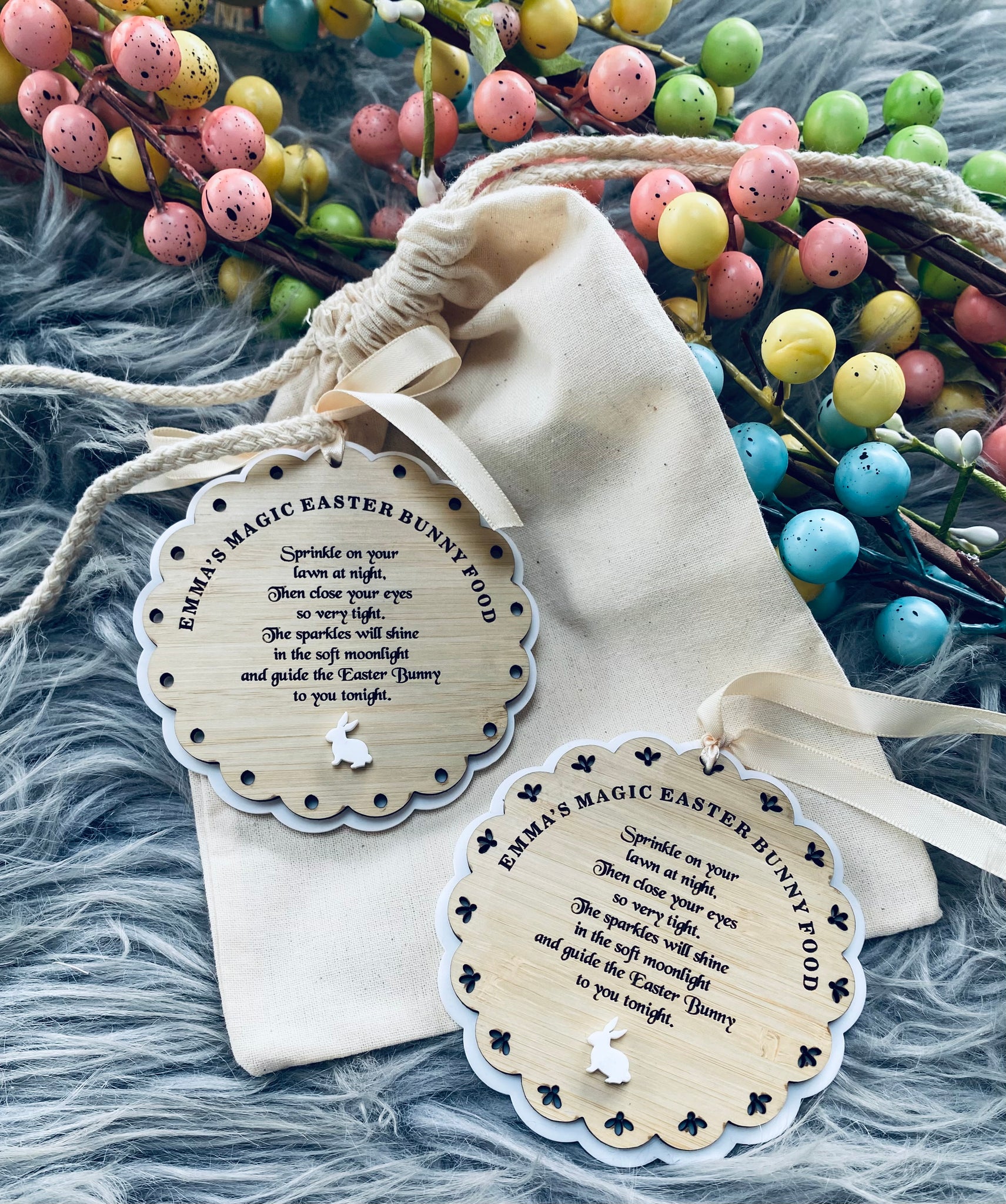 Bamboo and acrylic laser cut tag with whimsical Easter Bunny poem